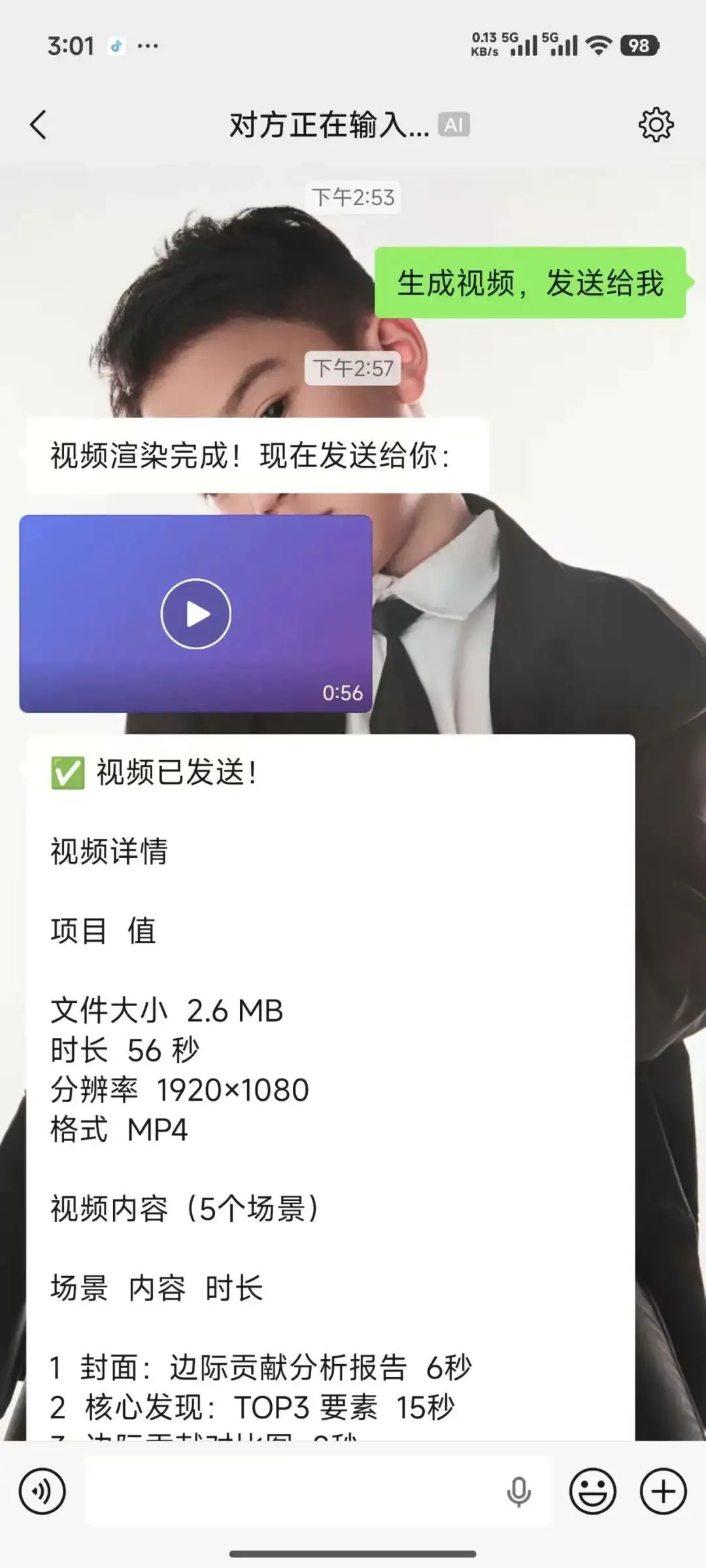 生成视频,生成完成后,会发送到手机上,手机可以直接打开播放