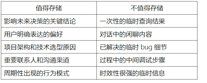 记忆蒸馏技巧:并非所有信息都值得长期保存。以下是蒸馏决策的参考标准:
