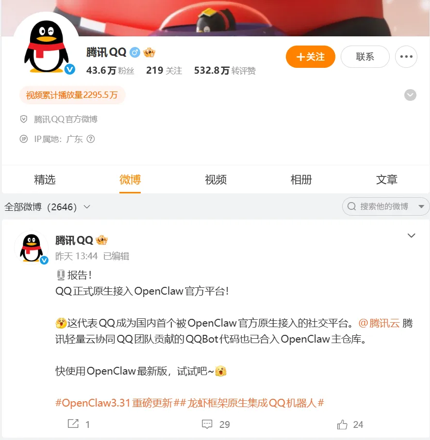 OpenClaw带火了飞书平台,那么再接入了QQ后,使大家又回归QQ平台。