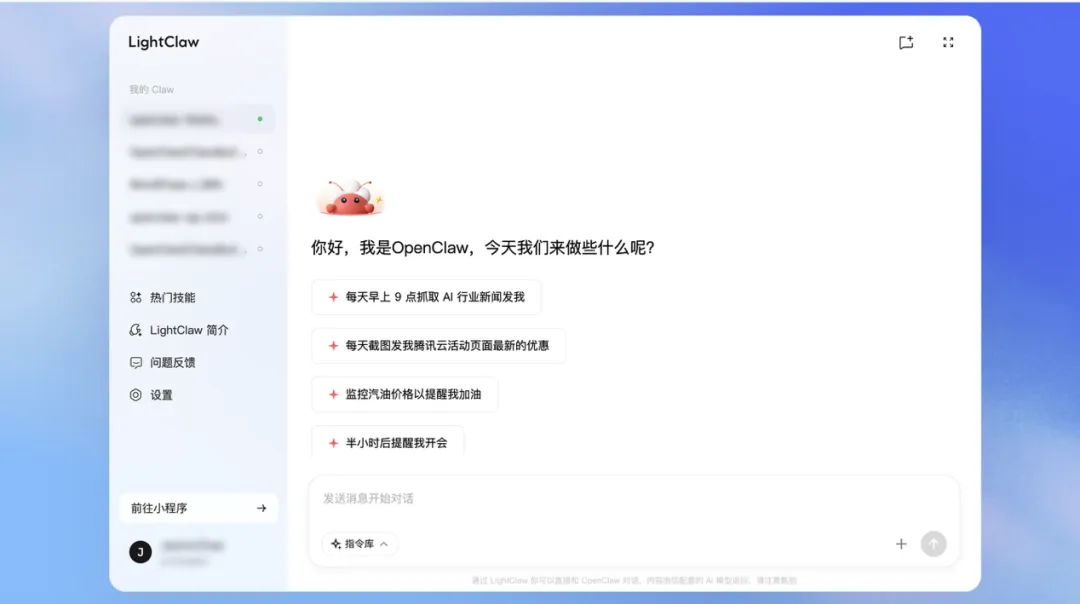 打开 LightClaw。