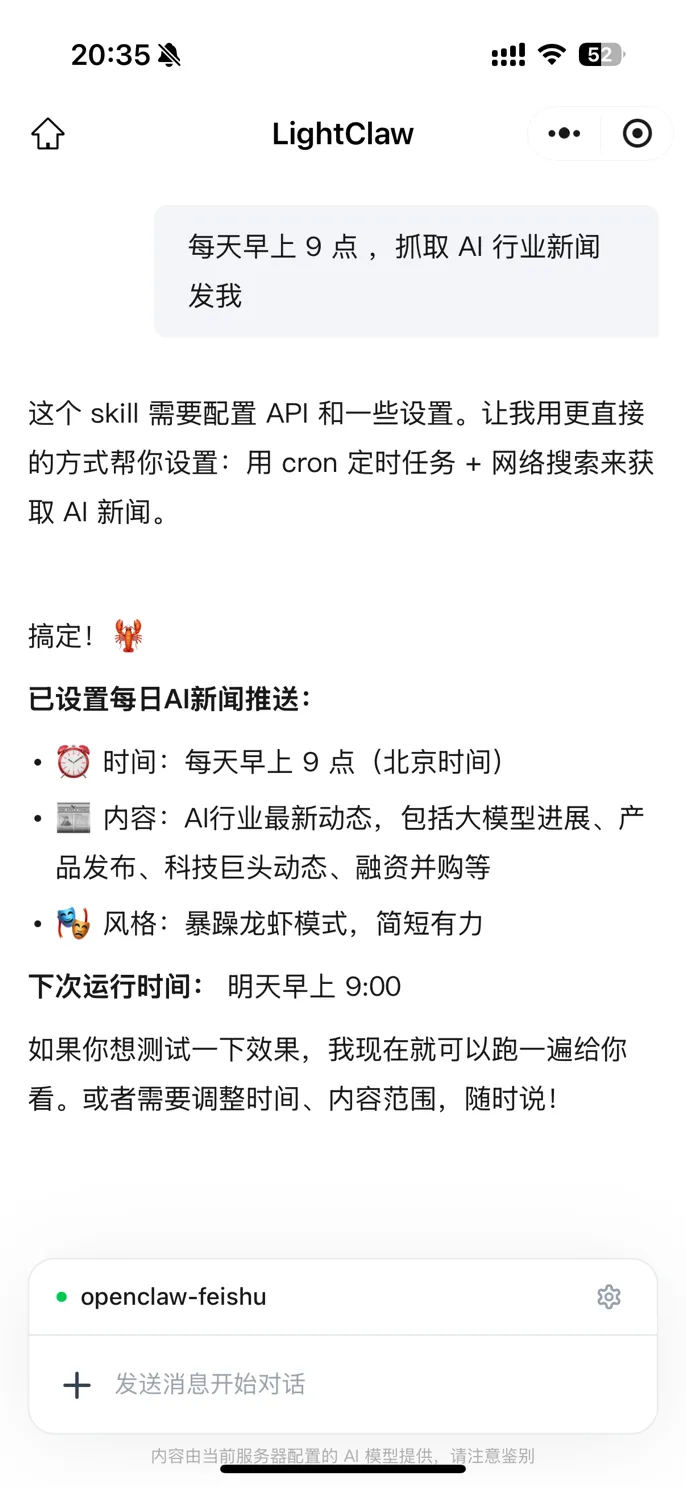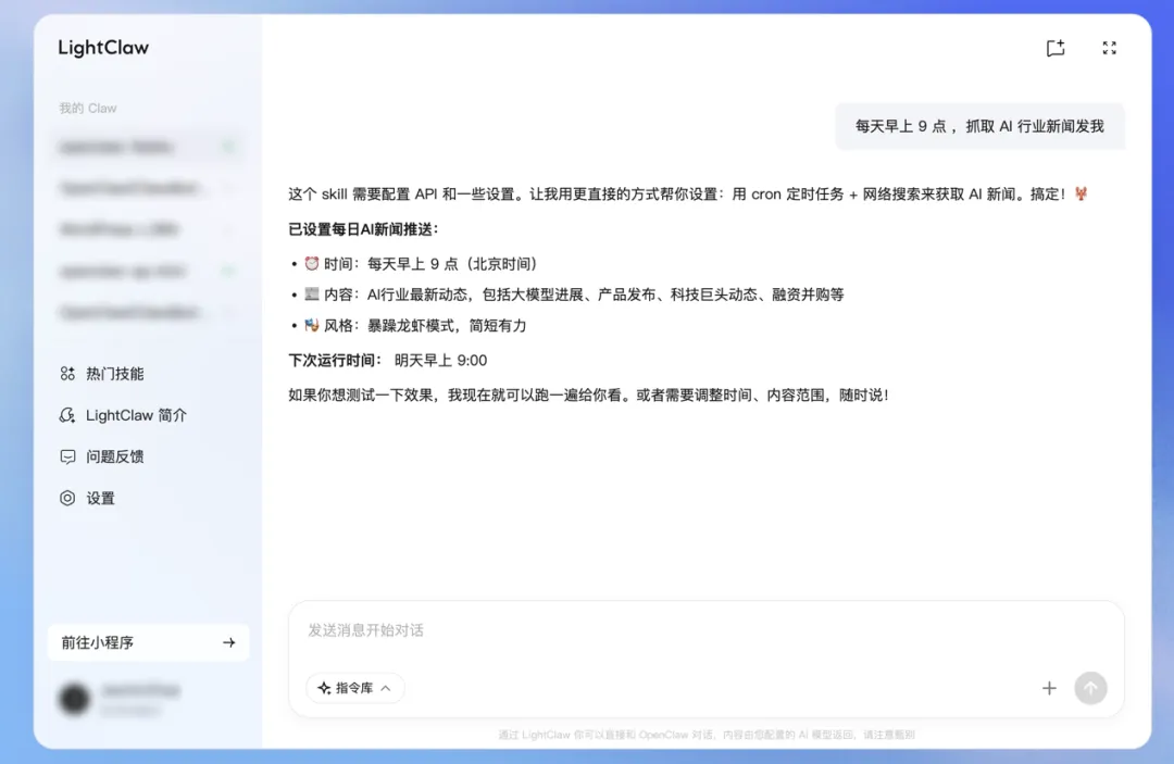 "每天9点,推送AI新闻。"