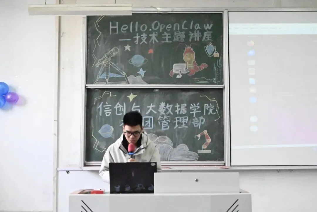 4月2日,由社团管理部主办的Hello OpenClaw!——技术主题讲座在F102教室顺利举行。活动于4月2日12:00准时开启,本次活动聚焦当下热门的AI Agent技术,以理论讲解与实操演示相结合的形式,为同学们带来一场前沿技术盛宴,吸引众多同学积极参与。