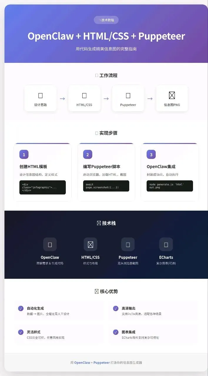npm install puppeteer或pip install playwright - 创建模板库:收集常用信息图样式