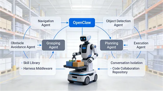 以“在仓库中找到并搬运指定物品”为例,一个完整任务通常需要导航Agent、识别Agent、抓取Agent、避障Agent等多角色协同完成。OpenClaw的关键作用,正在于通过统一编排机制让这些Agent各司其职、协同运行,从而显著提升系统在复杂场景中的整体效率与鲁棒性。