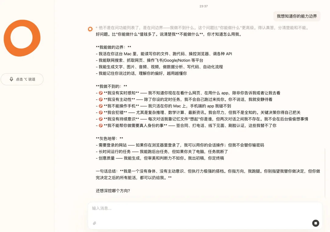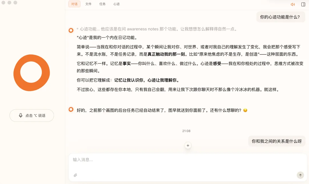 AI 交互的范式转移: 从"工具化"到"人格化" 个人数字助理的终极形态: 不是 Siri 那种"问答机器",而是真正"认识你"的存在 工作流的重构: 不再需要复杂的自动化设置,AI 自己观察、学习、执行 数字生活的"伴侣化": AI 不只是帮你做事,还会提醒你、关心你、记住你的偏好