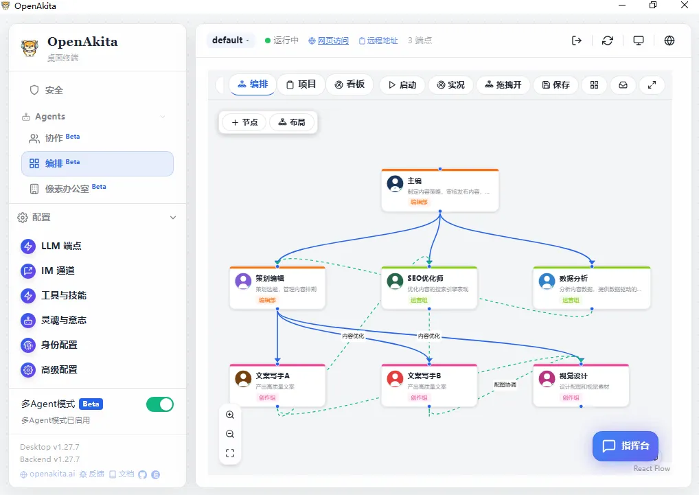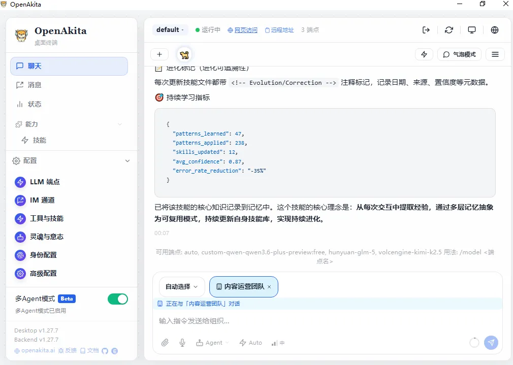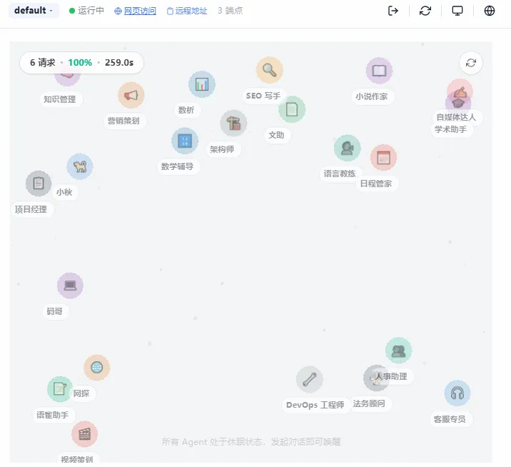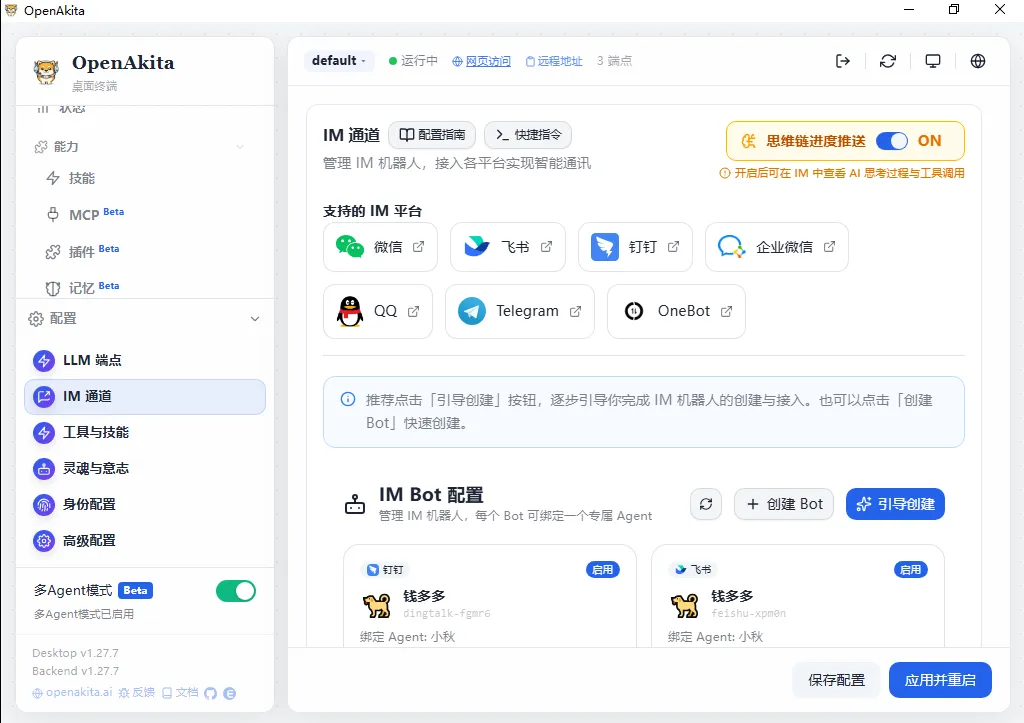 多平台 IM 同时在线(飞书/钉钉/企微) 记住你的偏好,越用越懂你 专业分工,20+ 子 Agent 协作