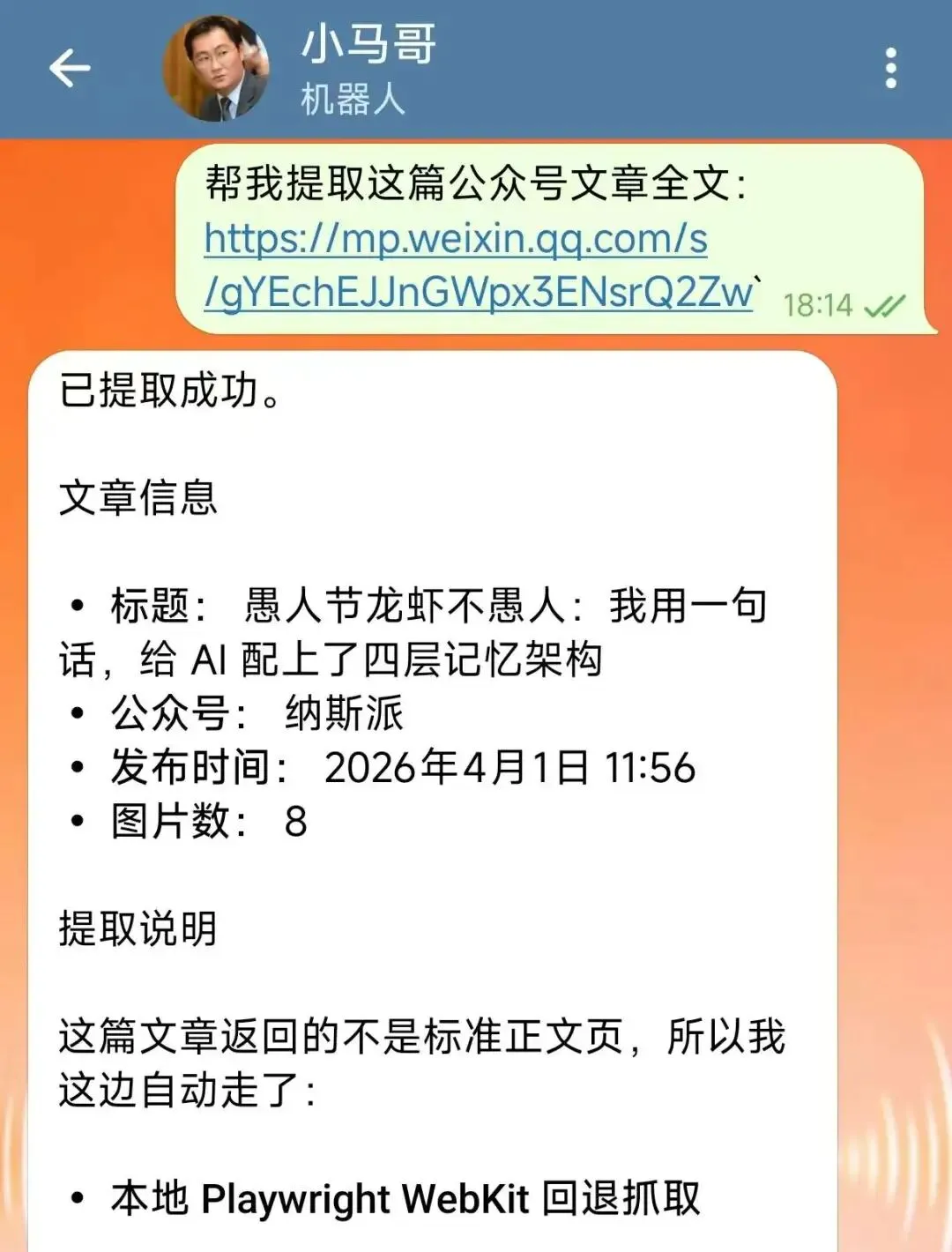 如果你给它一篇公众号文章链接,它可以直接提取: