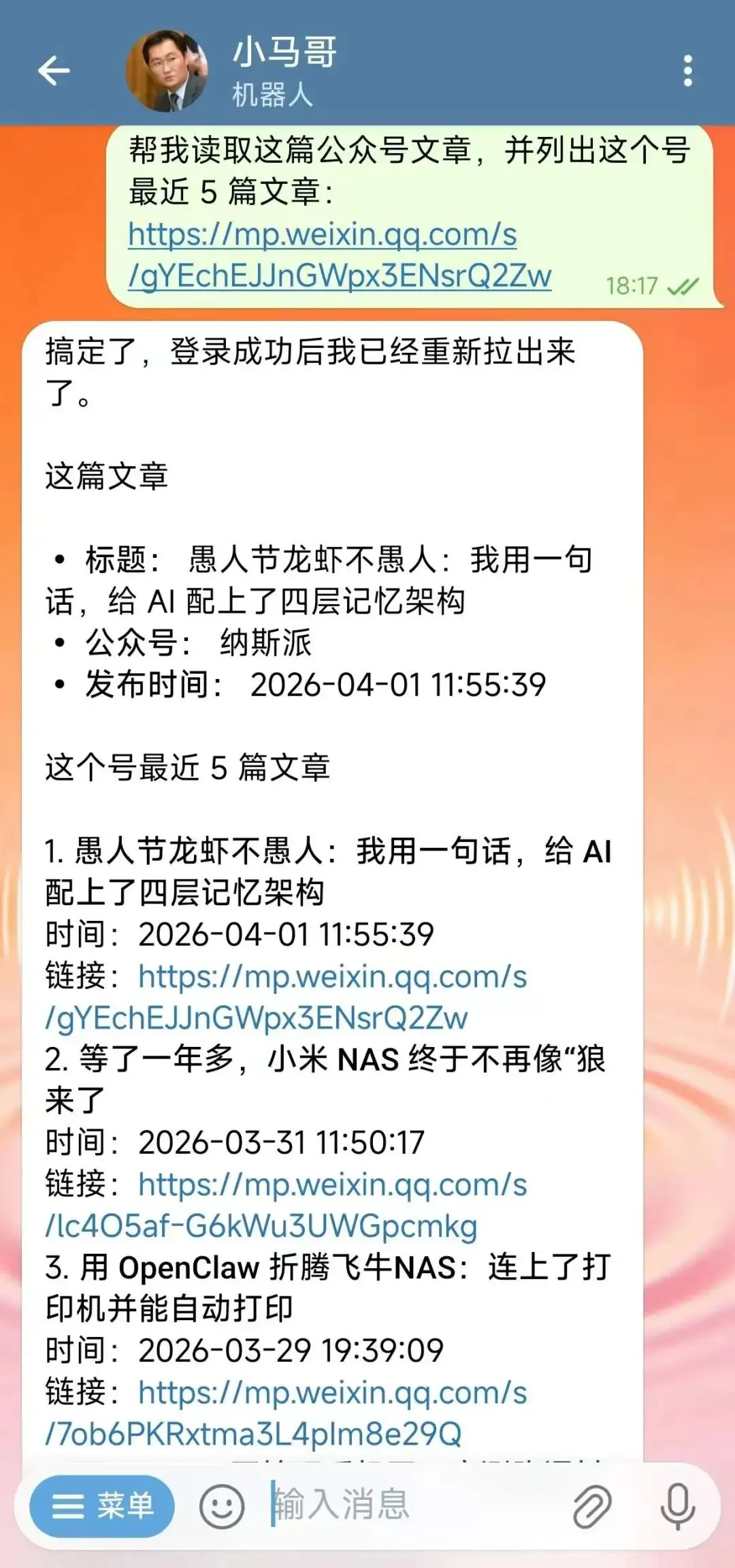 你:帮我读取这篇公众号文章,并列出这个号最近 5 篇文章:https://mp.weixin.qq.com/s/gYEchEJJnGWpx3ENsrQ2Zw