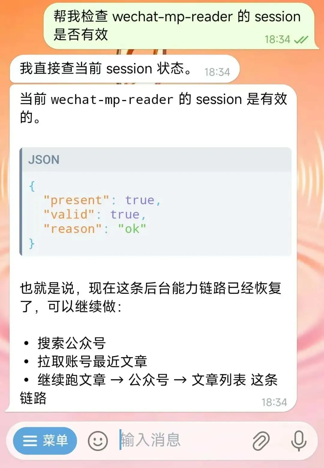 你:帮我检查 wechat-mp-reader 的 session 是否有效