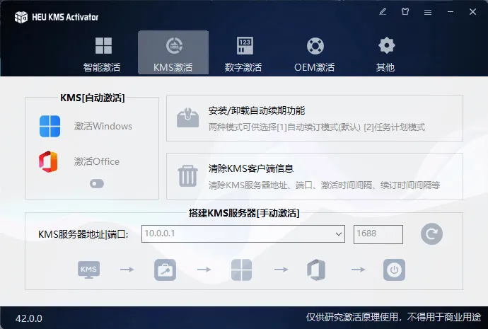 它的激活原理也很靠谱,是基于微软官方的KMS批量许可服务机制,在本地系统搭建KMS服务器来完成激活,不用联网也能操作,不会泄露你的任何系统信息,完全不用担心安全问题。