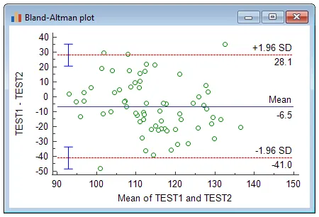 方法学比较(Bland-Altman 图):用于评估两种测量方法(如新旧仪器)的一致性分析,能轻松生成 Bland-Altman 图和计算一致性界限。