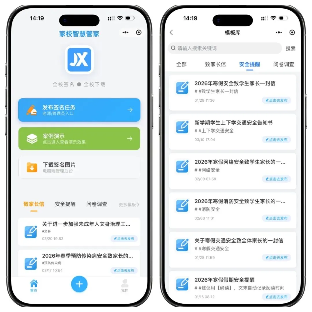 家校智慧管家小程序,发通知、收签字、存档案、一个工具全搞定。全校电子签名、全校下载、免费发布,永久免费使用。