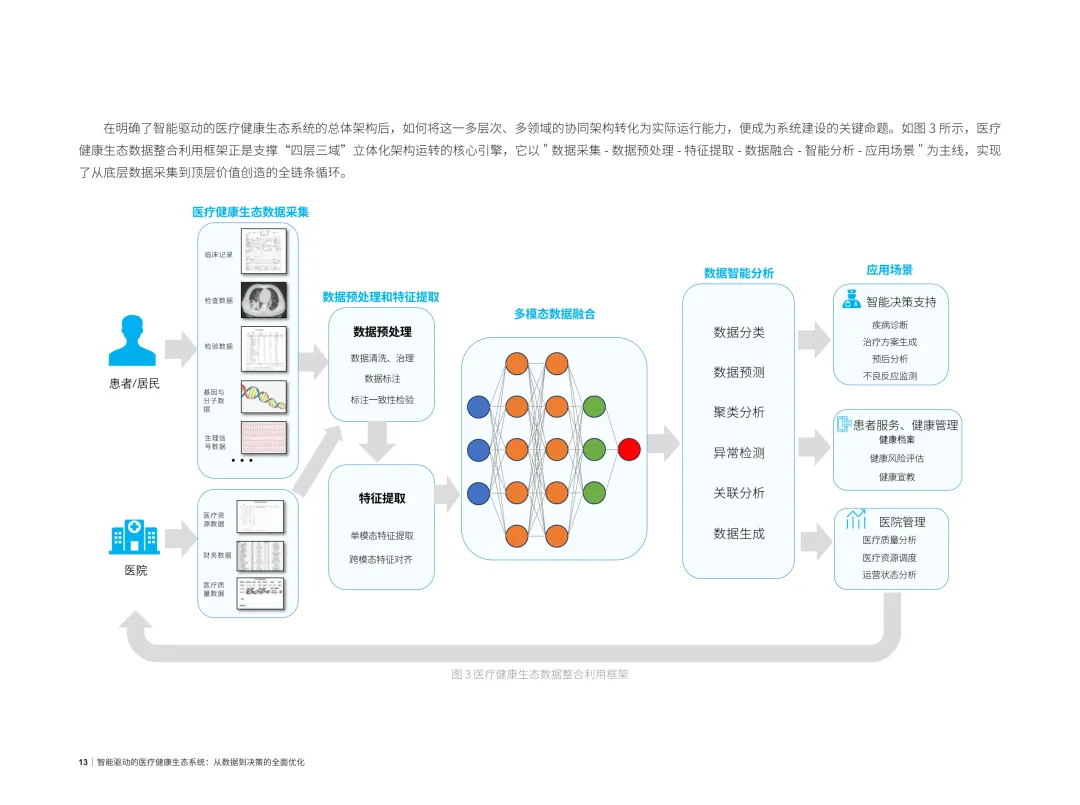 痛点解决:报告指出,传统医院存在严重的“数据孤岛”,而多模态数据融合(文本+影像+生理信号)技术已能将这些碎片化数据转化为90%以上的风险识别准确率。