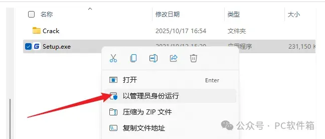 3.选中【Setup】文件,右键以管理员身份运行。