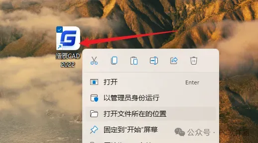11.鼠标右击桌面【浩辰CAD2022】选择【打开文件所在的位置】。