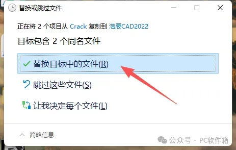 13.点击【替换目标中的文件】。