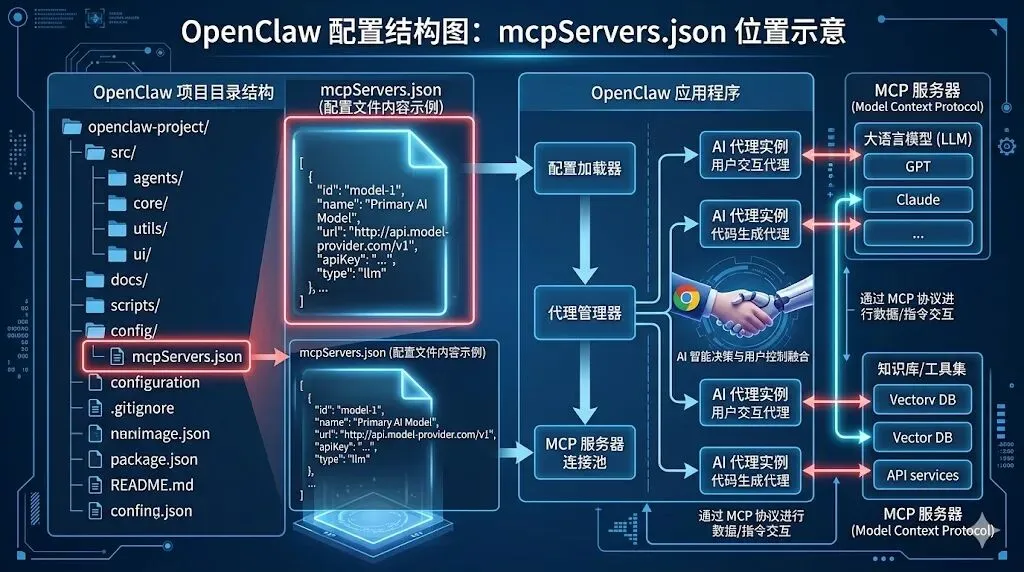 使用 antigravity 工具编辑 OpenClaw 配置文件。你可以直接发自然语言指令,它会自动帮你把 JSON 片段插入正确位置。