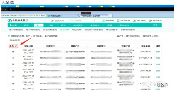 农业银行:1.企业网银对账 2.对账单下载 3.回单下载 4.账户明细-农业银行流水明细导出一、打印电子回单:请选择PDF文件格式二、打印对账单:请选择PDF文件格式各老板请注意:1.4.7.10月都需要网银对账(每季度需要点击对账,不对账会导致对公银行账户被冻结无法使用)工商银行对账流程(电子回单 流水对账单下载)中国银行对账流程(电子回单 流水对账单下载)建设银行对账流程(电子回单 流水对账单下载)农业银行对账流程(电子回单 流水对账单下载)邮政银行对账流程(电子回单 流水对账单下载)民生银行对账流程(电子回单 流水对账单下载)浦发银行对账流程(电子回单 流水对账单下载)招商银行对账流程(电子回单 流水对账单下载)平安银行对账流程(电子回单 流水对账单下载)中信银行对账流程(电子回单 流水对账单下载)交通银行对账流程(电子回单 流水对账单下载)兴业银行对账流程(电子回单 流水对账单下载)光大银行对账流程(电子回单 流水对账单下载)广发银行对账流程(电子回单 流水对账单下载)华夏银行对账流程(电子回单 流水对账单下载)东莞农商银行对账流程(电子回单 流水对账单下载)