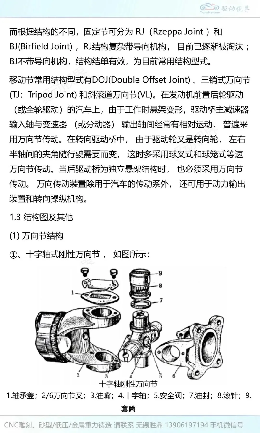 汽车驱动轴培训材料报告(附下载)汽车上的万向节传动常由万向节和传动轴组成, 主要用来在工作过程中相对位置不断改变的两根轴间传替动力。万向节传动应保证所连接两轴的相对位置在预计范围内变动, 能可靠的传替动力;保证所连接两轴尽可能同步 (等速)运转;允许相邻两轴存在一定角度;允许存在一定轴向移动。