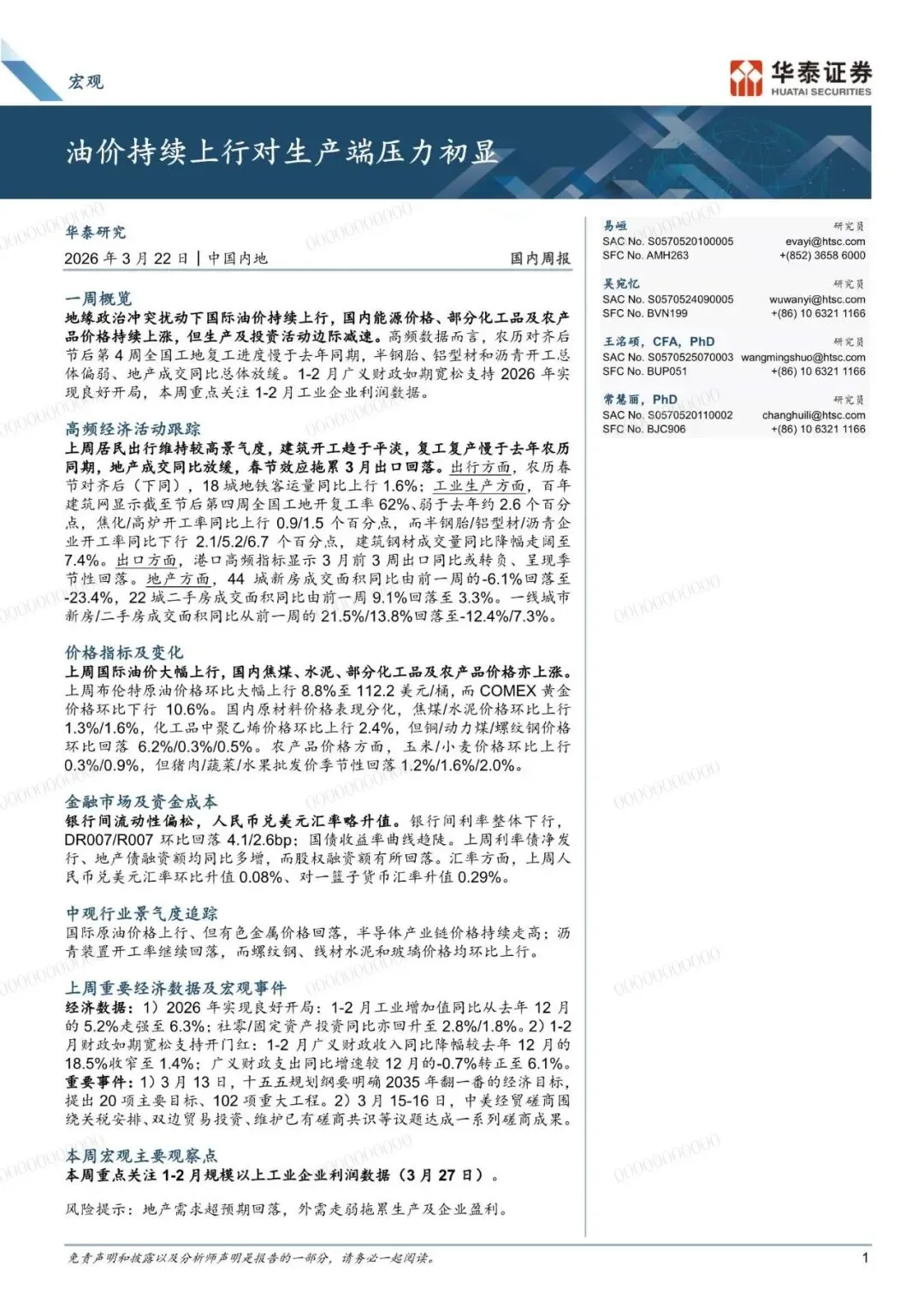 宏观:油价持续上行对生产端压力初显-260322-华泰证券-24页