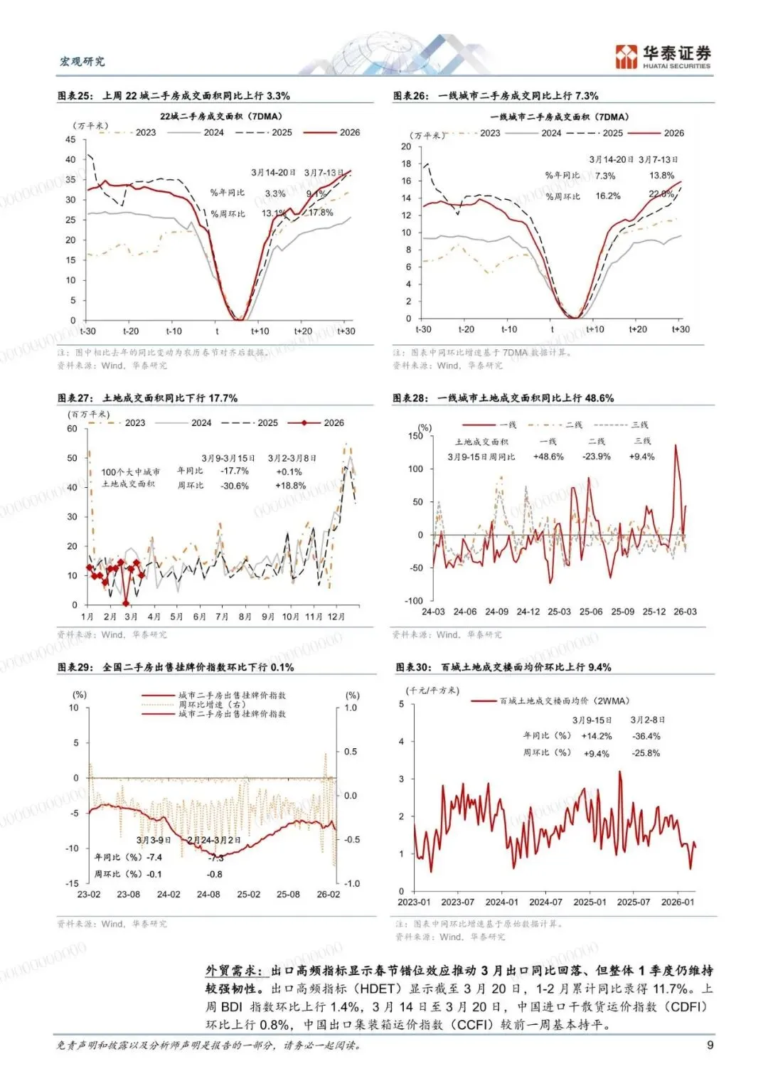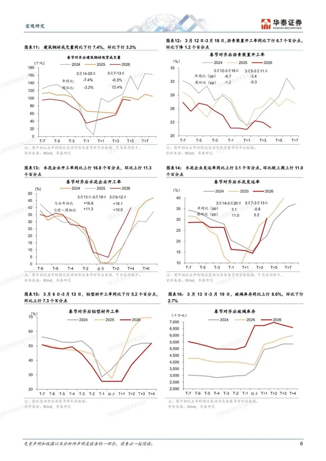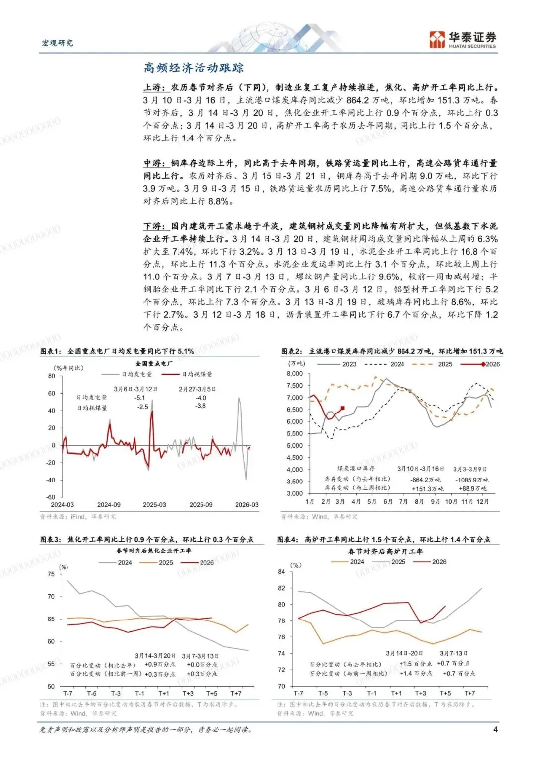 地缘政治冲突扰动下国际油价持续上行,国内能源价格、部分化工品及农产品价格持续上涨,但生产及投资活动边际减速。高频数据而言,农历对齐后节后第 4 周全国工地复工进度慢于去年同期,半钢胎、铝型材和沥青开工总体偏弱、地产成交同比总体放缓。1-2 月广义财政如期宽松支持 2026 年实现良好开局,本周重点关注 1-2 月工业企业利润数据。