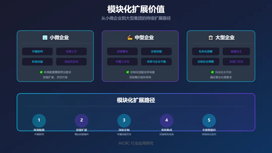 对于企业来说,这意味着一个可以持续扩展的AI能力平台,从小处着手,逐步深入,最终实现全面的智能化升级。