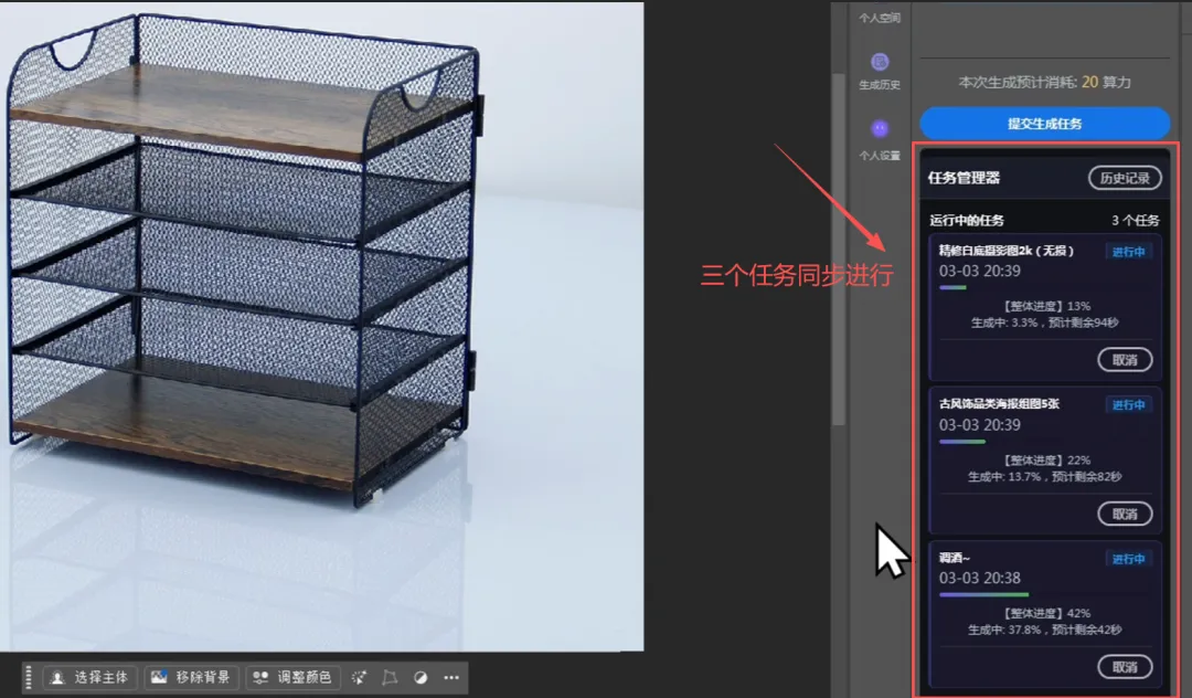 处理过程中完全不影响PS的其他编辑操作,你可以继续修图、调色、排版