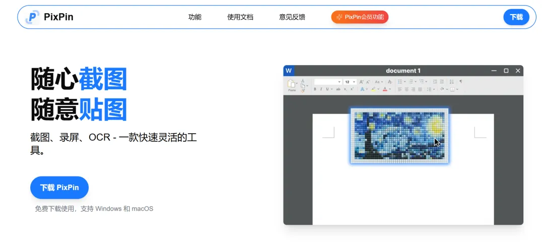 Pixpin 是一款特别强大好用的截图软件它可以智能识别不同的窗口和浏览器上面的不同 UI 内容而且它还可以录制 GF 图片截取的内容还可以编辑标注、打马赛克等等功能它免费开源,目前只有 Windows 版本