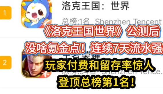 刚刚开启公测才一周的腾讯旗下游戏《洛克王国世界》,自上线以来的表现完全可以用“超出预期”来形容,最让大家感到震撼的就是这款游戏那惊人的玩家留存率和超高的付费表现。