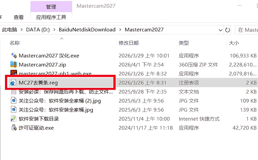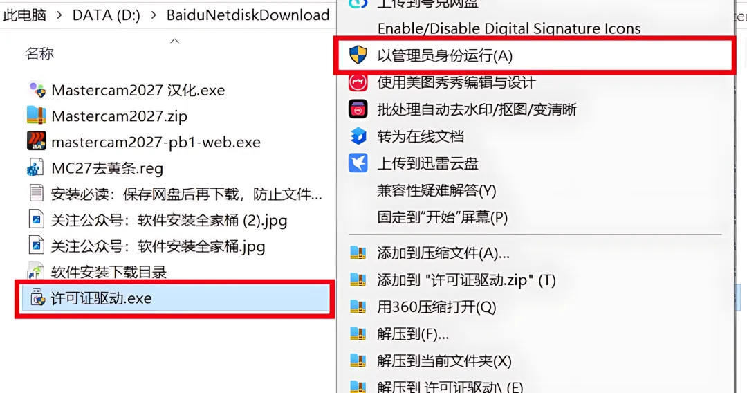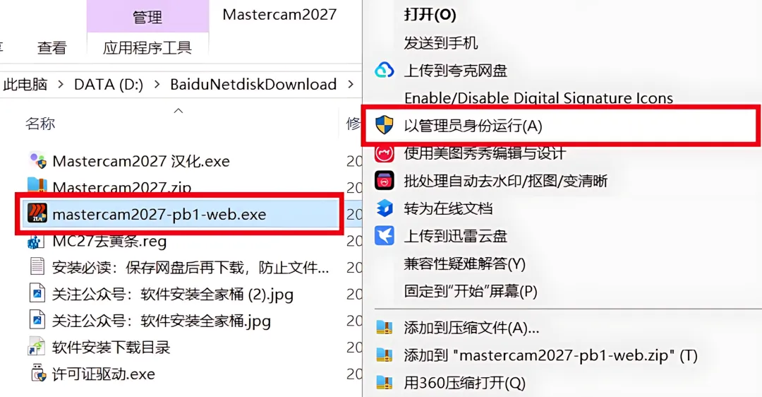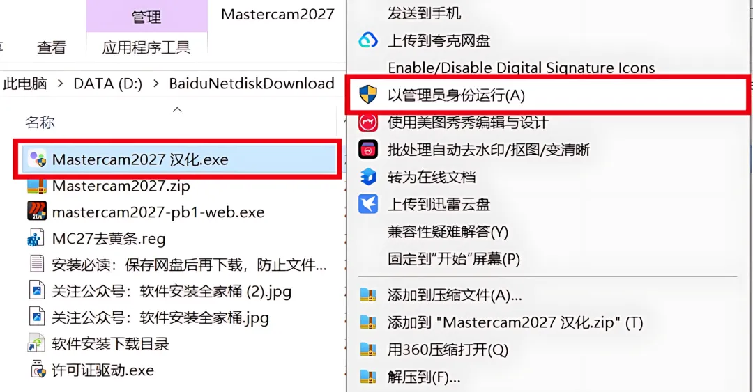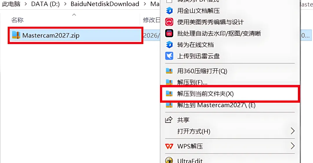1.下载Mastercam2027软件安装包到电脑上,右键选择【解压到当前文件夹】。