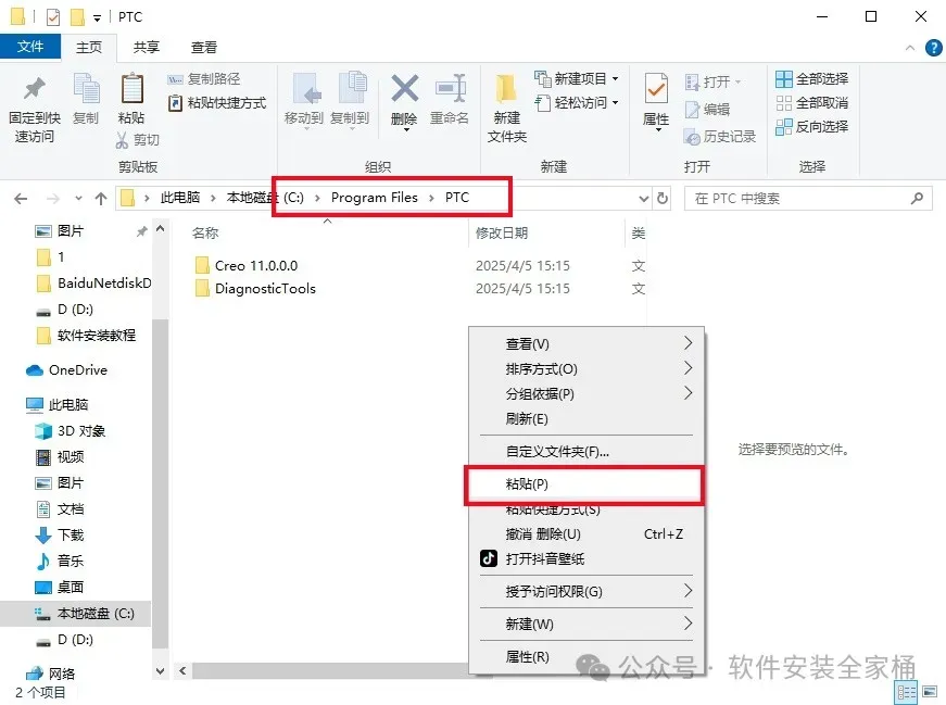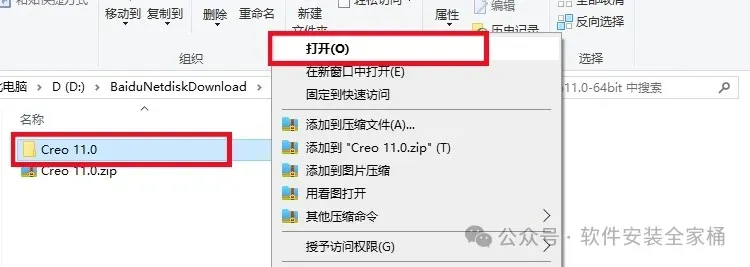 1.打开下载的Creo软件安装包,鼠标右击压缩包选择【解压到当前文件夹】。