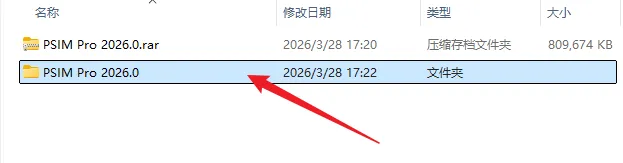 1.解压安装包:鼠标右击【PSIM Pro 2026.0】压缩包,选择电脑上安装的解压软件,点击【解压到PSIM Pro 2026.0】。