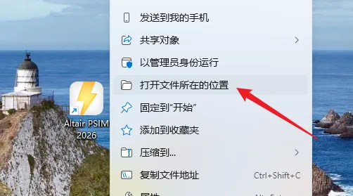19.鼠标右击桌面【Altair PSIM 2026】图标选择【打开文件所在的位置】。