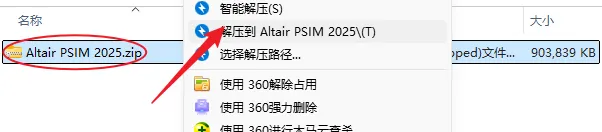 1.解压安装包:鼠标右击【PSIM Pro 2025】压缩包,选择电脑上安装的解压软件,点击【解压到PSIM Pro 2025】。