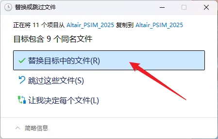 22.点击【替换目标中的文件】。