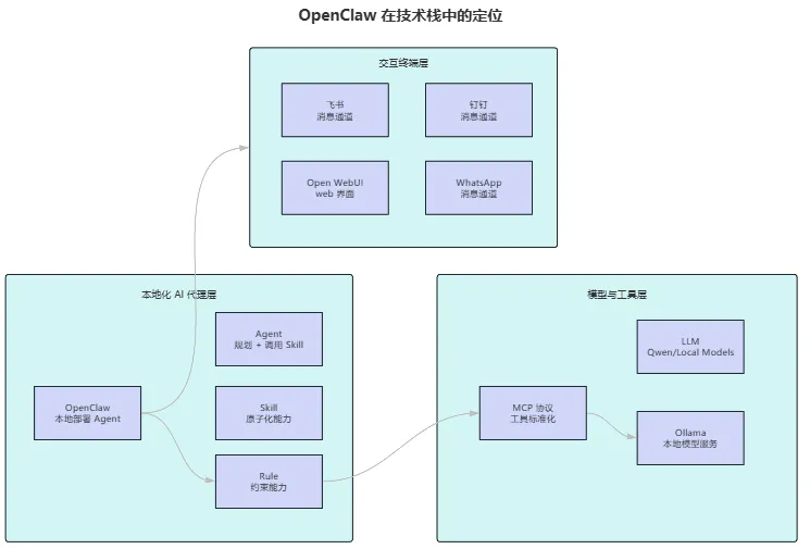 OpenClaw 的运行时大致可以拆成五层(理解这个结构,就理解它为什么不需要画图):