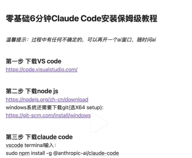 零基础3分钟安装Claude Code保姆级教程超适合新手,一步步演示 任何网络,快速安装claude code并落地使用 具体claude code怎么用,完整版就不一一展示了Claude Code安装包及视频教程已经给大家打包好了获取方式:1.点赞+关注2.公众号内回复“学习”即可