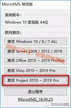 12.点“激活 Project 2010 ~ 2019 Pro”