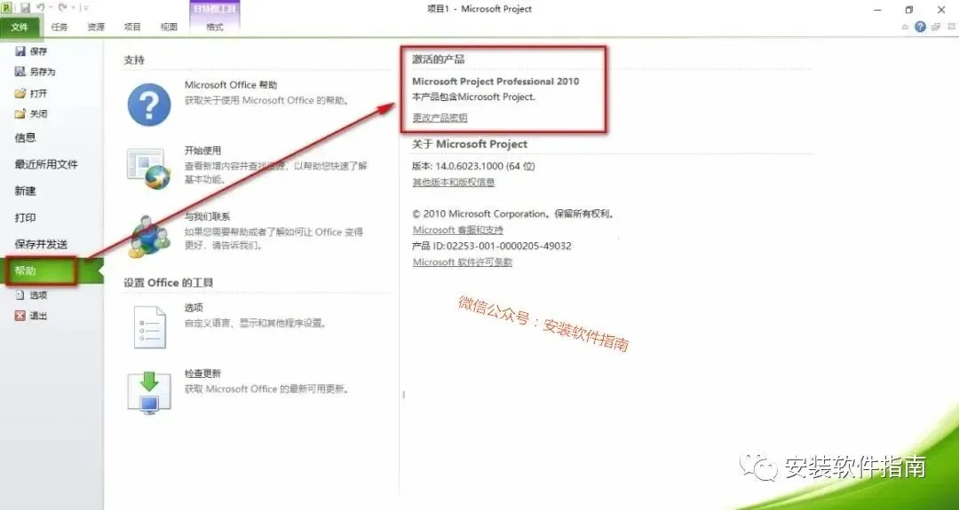 14.在菜单找到Project 2010并打开。点击帮助,可以查看是否激活成功,如下图就代表激活成功了。