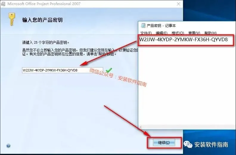4.输入密钥W2JJW-4KYDP-2YMKW-FX36H-QYVD8 ,点击“继续”