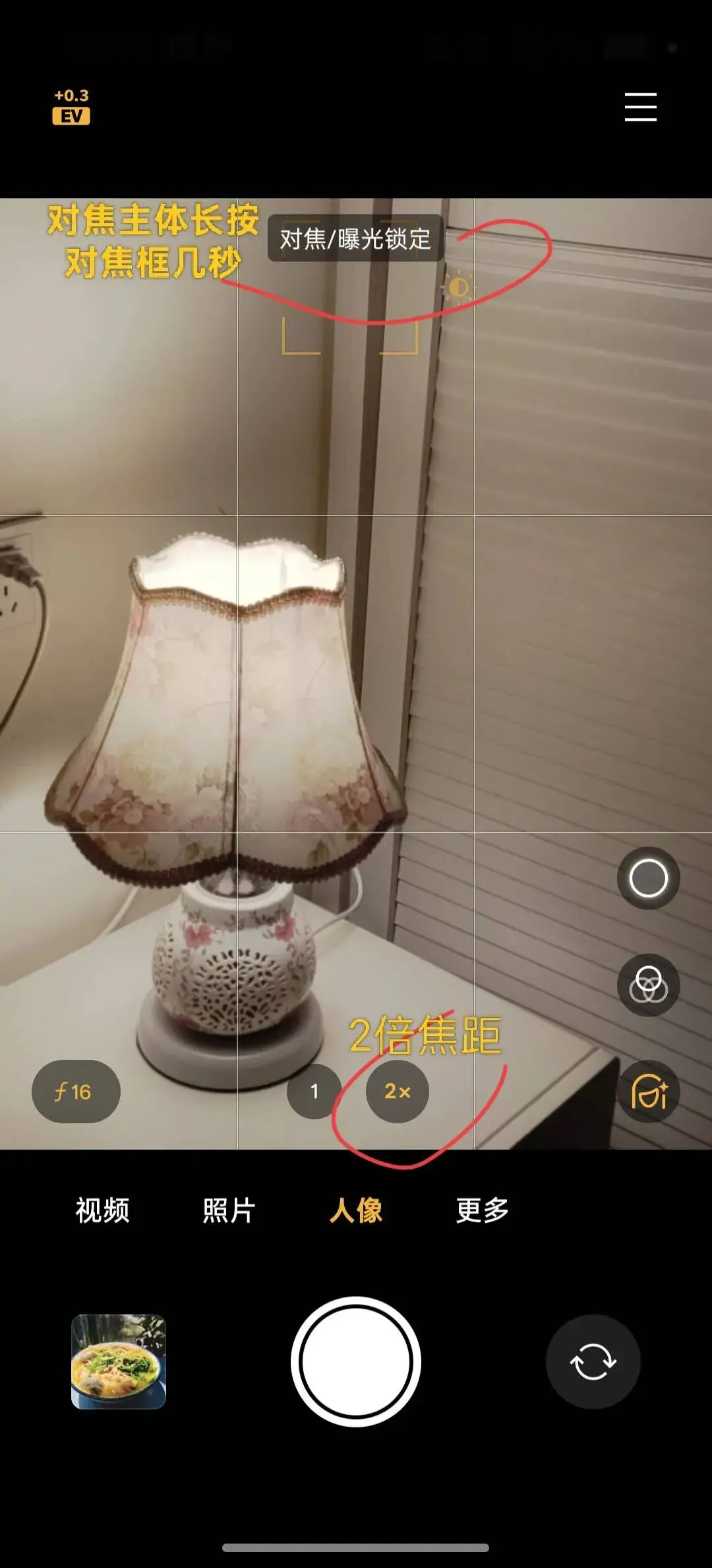 如想让背景虚化就使用“人像模式”,拍摄,选择2倍焦距,能更突出主体,画面更简洁