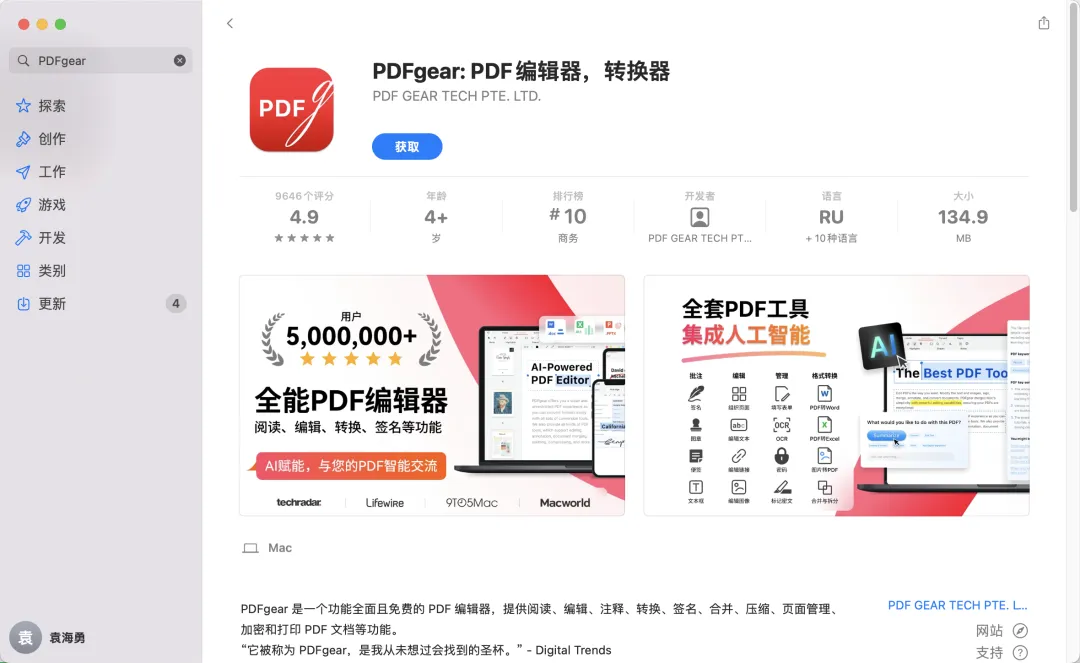 PDF格式转换:pdfgear支持PDF转其他格式,比如PDF转Word、PDF转Excel、PDF转PNG等等;也支持其他格式转PDF,比如Word转PDF、Excel转PDF、PPT转PDF等等。