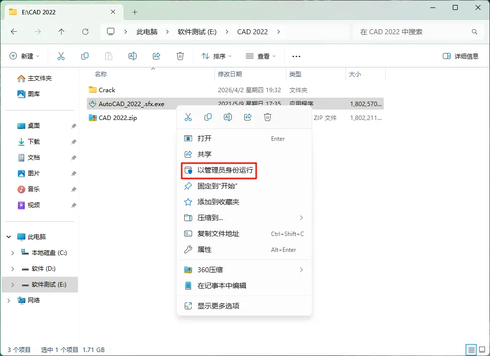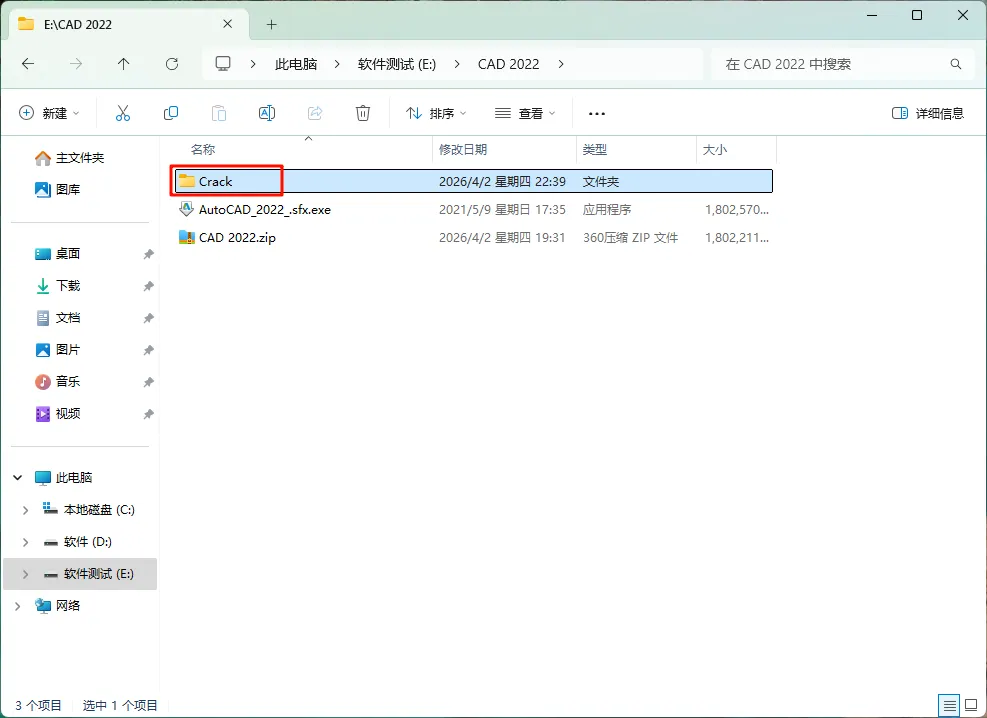 [软件名称]:AutoCAD 2022