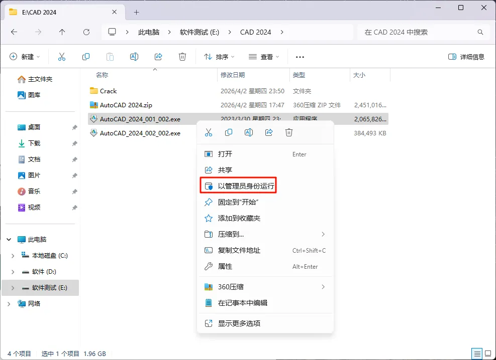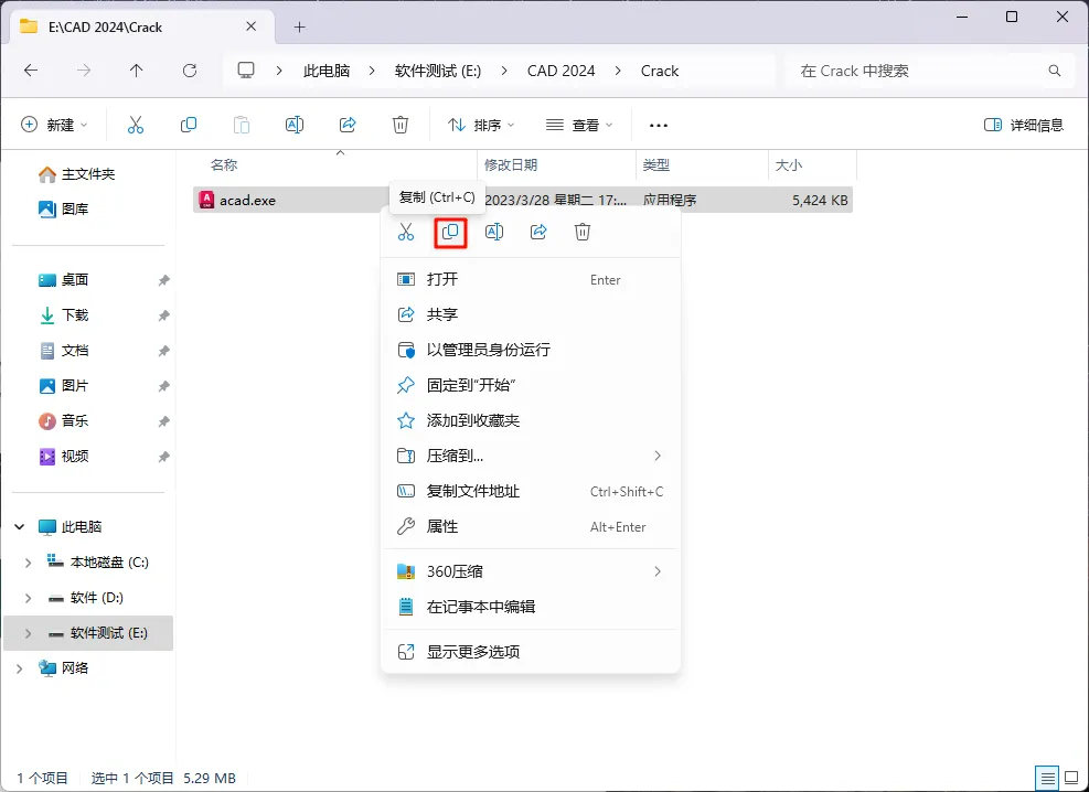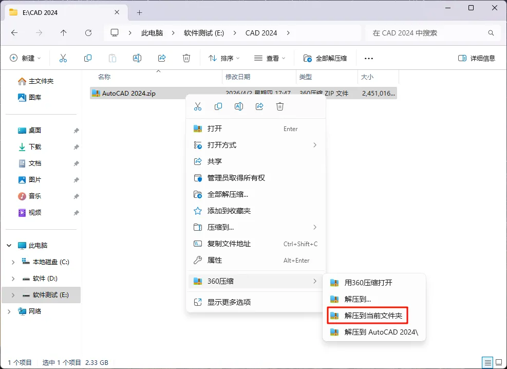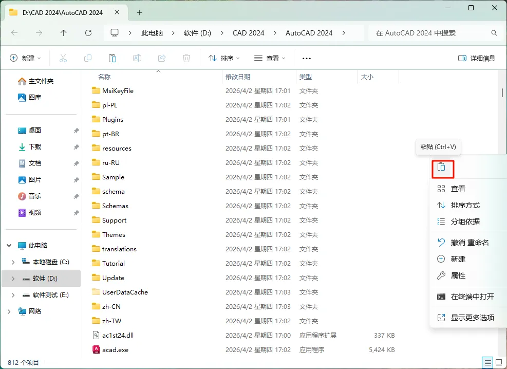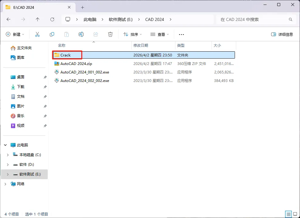 [软件名称]:AutoCAD 2024
