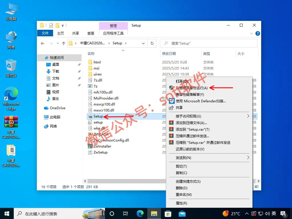 3,鼠标右键Setup安装程序,选择以管理员身份运行安装程序