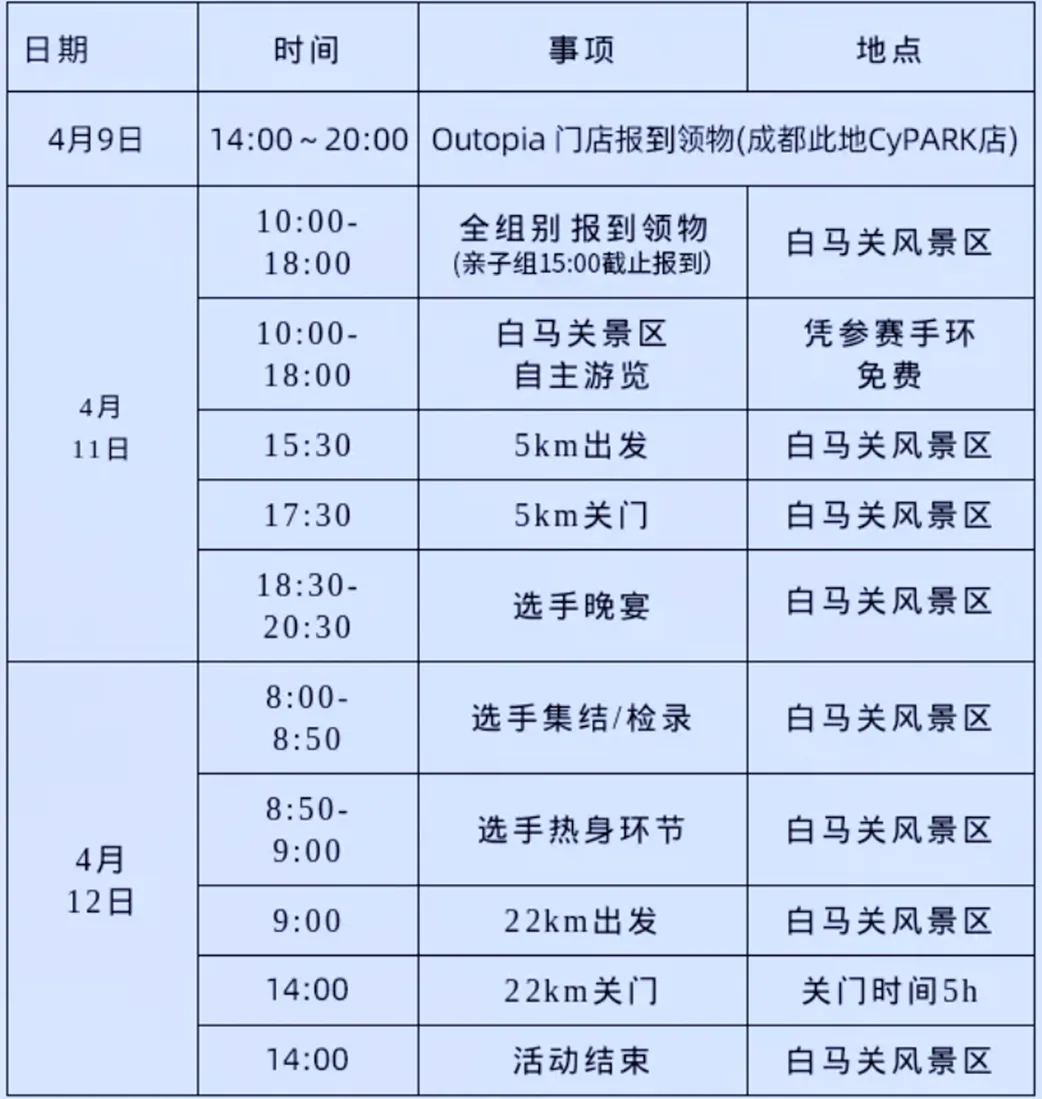 各位跑友,Outopia山野来赛白马关站的脚步声越来越近了。赛前最重要的一件事——报到领物,今天一次说清楚,请查收这份报到攻略。