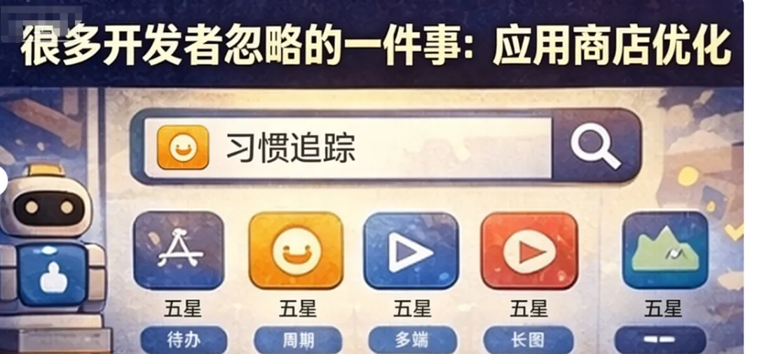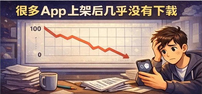 为什么你的 App 一直没人下载?90%的人卡在这一步一、为什么很多 App 上架后几乎没有下载?很多开发者都会遇到一个问题:App 已经上线了。但后台数据却是这样的:下载量:几乎为 0曝光量:非常低用户增长:没有变化很多人会以为是产品问题。但现实是:大部分 App 没有下载,是因为没有流量入口。二、应用商店每天有多少 App 上架?在Apple Inc. 的App Store以及Google Play每天都会有新的应用发布。如果没有优化:你的 App 很容易被淹没在大量应用里。三、90%的 App 卡在这一步:没有搜索流量很多用户下载 App 的方式其实很简单:直接搜索。例如:habit trackerai photovideo editor如果你的 App 没有关键词排名。用户就根本看不到你的应用。四、很多开发者忽略的一件事:ASOASO 的意思是:应用商店优化(App Store Optimization)简单来说就是:让你的 App 在搜索结果中排名更高。核心优化包括:标题关键词副标题应用描述截图转化率五、真正能带来下载的三个入口一个 App 的主要流量来源通常是:1 搜索流量用户直接搜索关键词。2 推荐流量应用商店推荐。3 外部流量社交媒体或广告。但对于大多数开发者来说:搜索流量最稳定。六、为什么有些 App 可以快速增长?很多成功的应用,其实都做对了一件事:先做流量入口。他们会:研究关键词优化应用页面持续优化排名当搜索排名上升后:下载量自然会增加。七、总结一句最重要的话很多 App 没有下载,并不是因为产品不好。而是因为:用户根本看不到你的 App。如果没有流量入口,再好的产品也很难增长。结尾引导如果你在做:iOS 应用Google Play 应用AI 工具出海 App那ASO(应用商店优化)是必须要了解的。因为:没有流量,就没有用户。