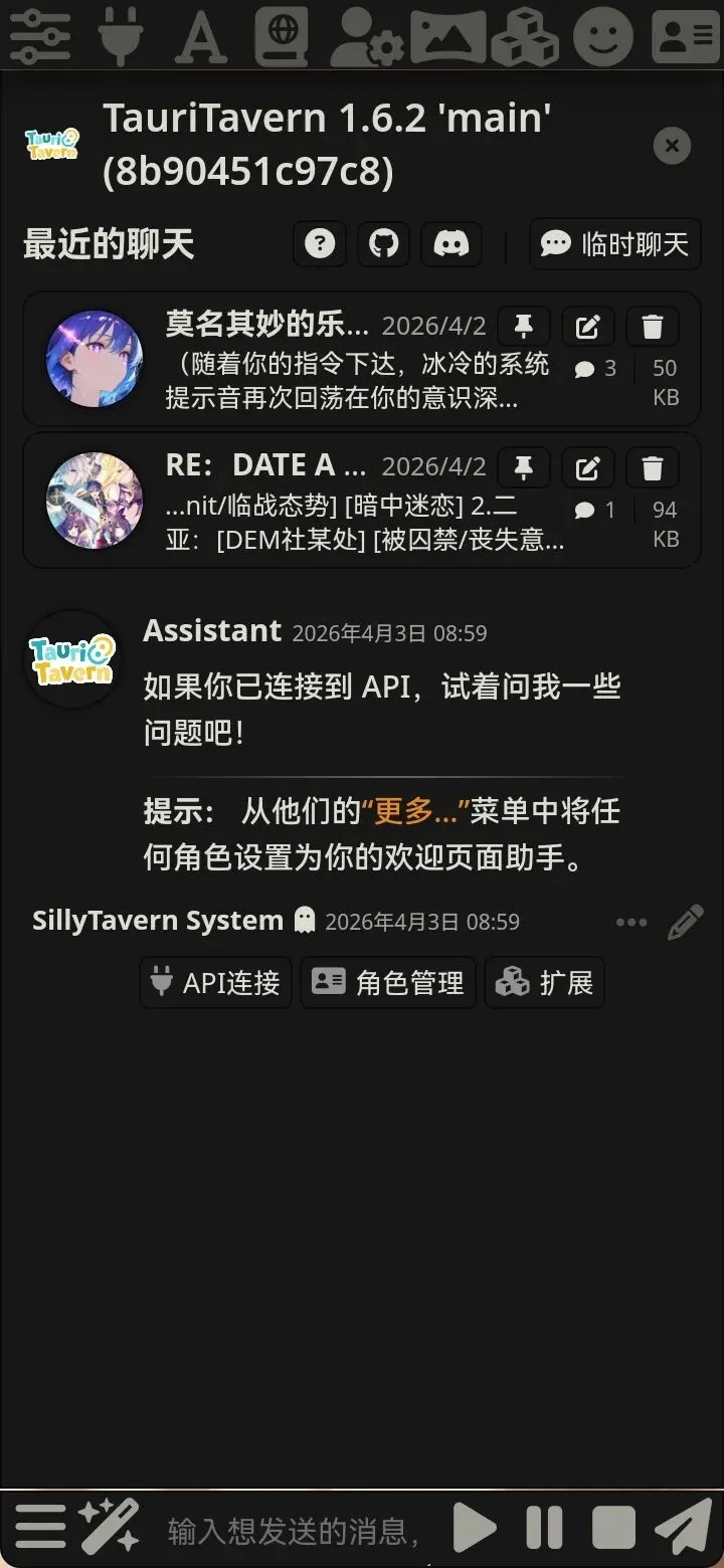 完整插件系统 (包括酒馆助手) 已支持、群聊、部分小按钮仍在持续补齐中。