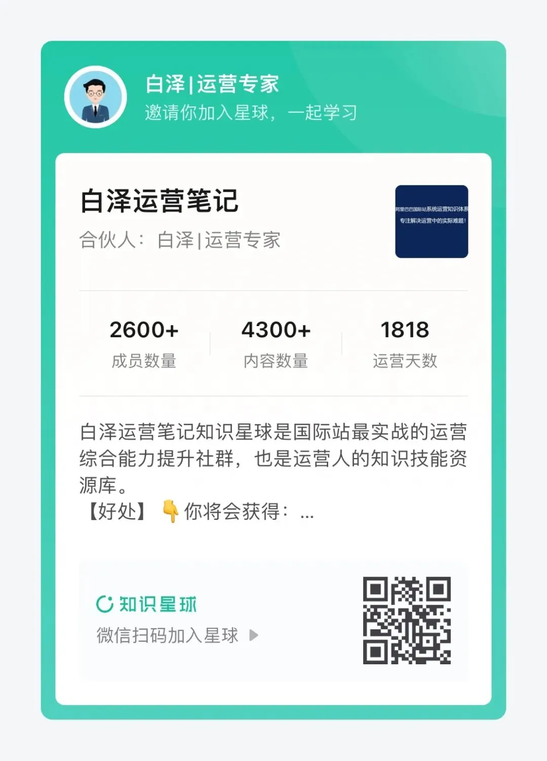 在白泽运营笔记知识星球里,我们把整个国际站运营核心理论,运营思维,实战方法,案例、运营难题解决方法等都全部呈现给大家,都有具体可落地实操的方法。很多会员朋友学完之后都惊呼:“这是把运营核心底牌都给我们看了!在别的地方是完全不可能学到这么精细的运营实战技能!