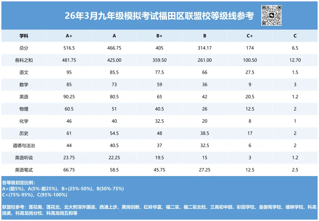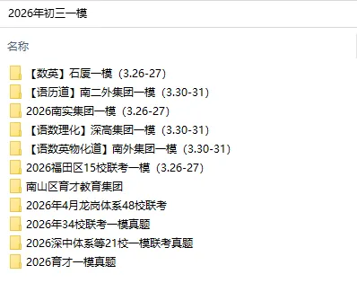 初三一模真题可下载!部分校/区一模考试等级线汇总!近期深圳多校/区已进行一模考试,部分考试等级线已出,给大家做了汇总!持续更新中...(数据来源于网络,仅供参考!)【初三一模真题汇总】公众号回复【初三一模】即可领取以上一模真题加【吉祥老师】了解更多中考/高中资讯如有侵权请联系删除往期回顾REVIEW速看!2026年中考五大变化!更新!2026年深圳高中官方招生QQ群!重点关注!深圳市2026年中考招生通知公布!附20条中招问答
